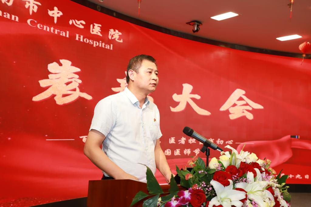 党委书记张荣岗代表医院党政领导班子向全院医师致以节日的祝贺和诚挚的问候。张荣岗指出,一代代渭医人与党同心、与党同行、为党拼搏,始终践行医者初心使命,大力弘扬敬佑生命、救死扶伤、甘于奉献、大爱无疆的卫生健康职业精神,用生命至上的医疗实践赢得了人民群众高度赞誉。希望全院医务工作者坚持学习为先,锐意开拓进取;紧扣发展为要,谋求创新突破;牢记质量为本,提升服务能力;常怀医者仁心,加强作风建设,不忘医者初心,牢记健康使命,大力弘扬和践行崇高职业精神和伟大抗疫精神,崇医德,精医术,铸医魂,高质量绘就医院发展新蓝图,谱写新时代中心医院追赶超越新篇章。