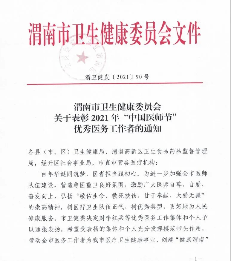 8月19日是第4个“中国医师节”,在建党百年的历史背景下,中国医师节意义重大。今年医师节主题为“百年华诞同筑梦,医者担当践初心”。为大力弘扬“敬佑生命、救死扶伤、甘于奉献、大爱无疆”的崇高精神和伟大抗疫精神,市卫健委对全市医疗健康事业作出贡献的集体以及个人进行表彰。乐鱼手机站入口荣获疫情防控突出贡献奖;胸心外科、心血管内科、超声诊断科刘晓晖、神经外科三病区杨震荣获医疗创新奖;李红兵等27名医务工作者分别获优秀学科带头人、优秀医师、疫情防控卫士、优秀医务管理者工作者等荣誉。