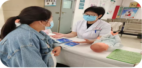 新生儿科开展新生儿抚触、鸟巢式护理、袋鼠式护理、家庭参与式护理、新生儿护理讲堂、早产儿出院后生长发育指导、线上专属医生等特色服务,全面实现新生儿安全照护。