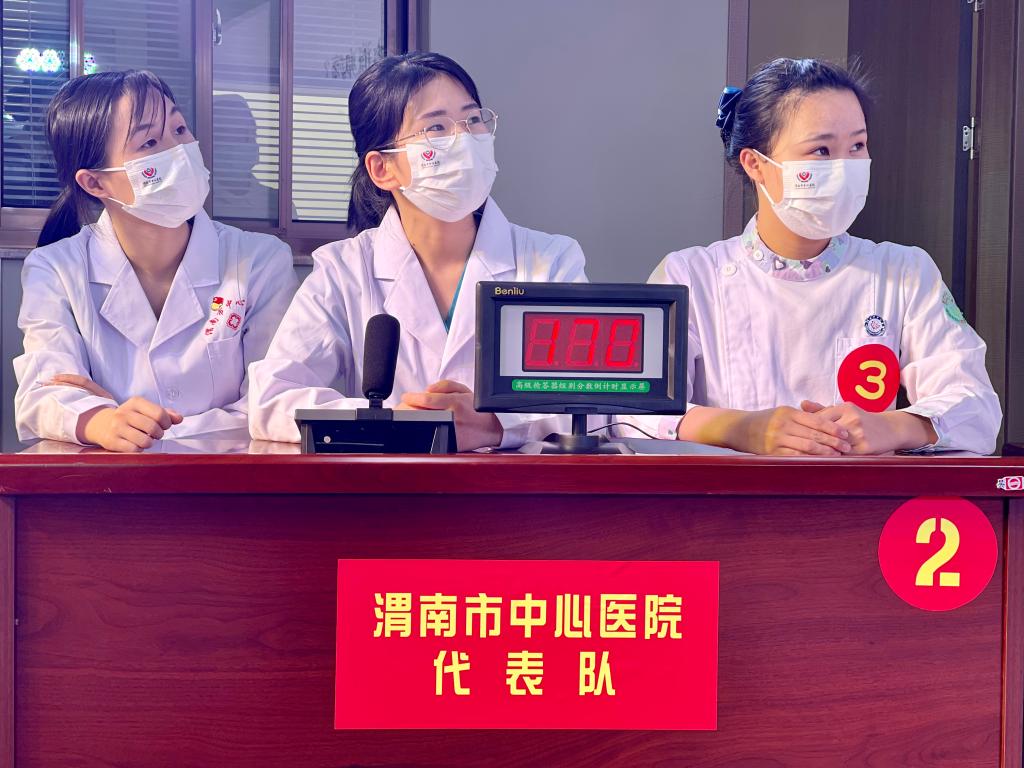 本次竞赛分为理论知识擂台赛和团体技能演练赛两个环节。在理论知识竞赛环节,产科医生刘尧、新生儿科医生马丽、产科护士王香茹沉着应对,表现优异,尤其是在风险抢答环节中表现出渭医人敢打敢拼、勇于挑战的顽强拼搏精神,最终以零失误旗开得胜,理论知识成绩总分遥遥领先。