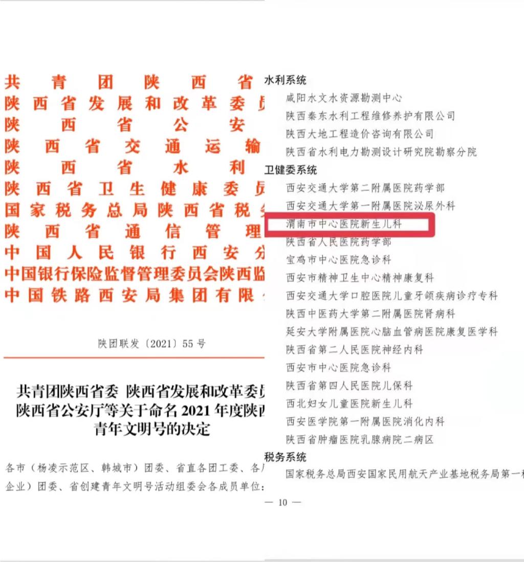 近日,共青团陕西省委、陕西省发展和改革委员会等11家单位联合发文,乐鱼手机站入口新生儿科荣获2021年度陕西省卫健委系统“青年文明号”称号。