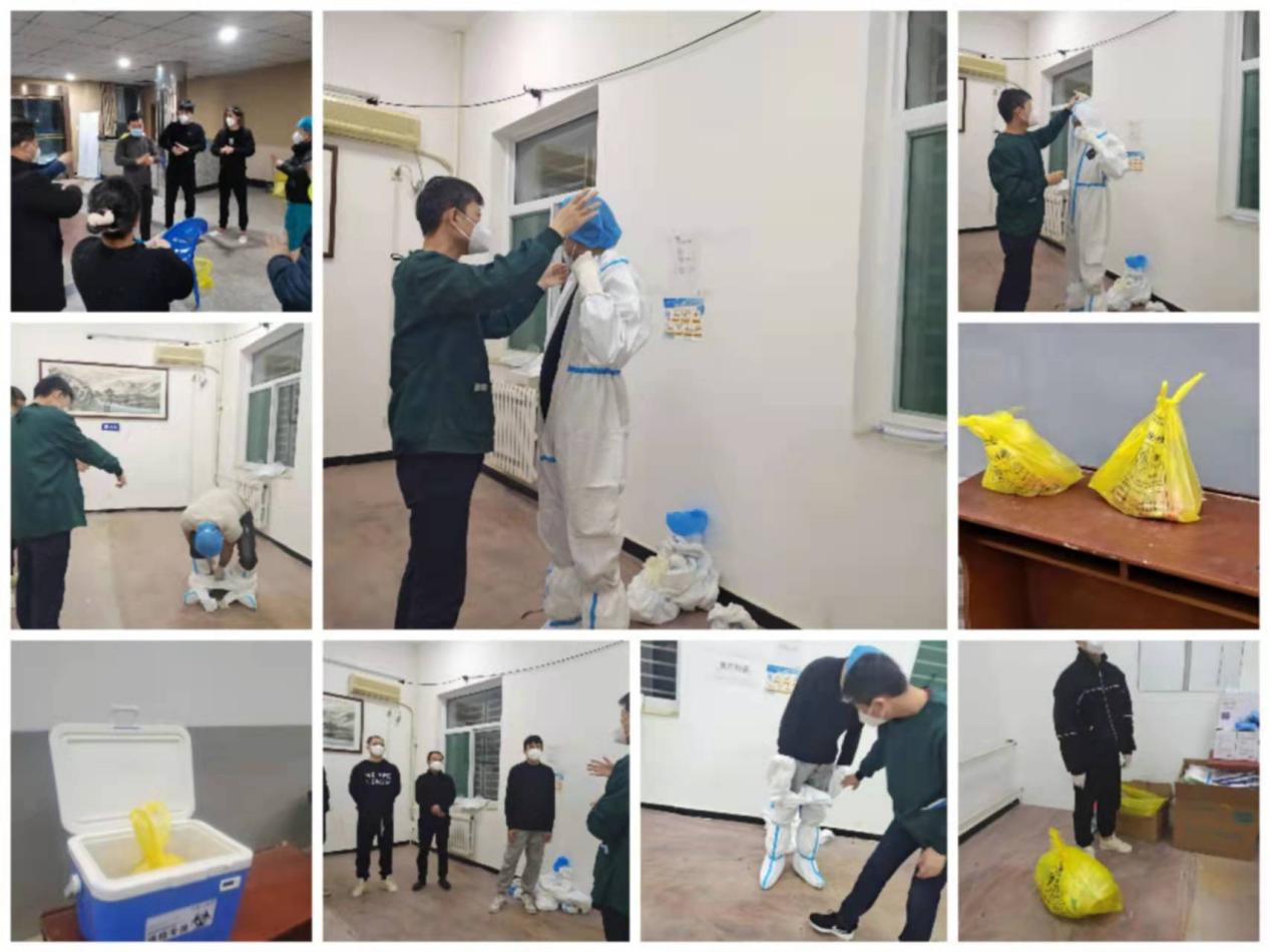 到达目的地后,从前熙熙攘攘的城市再没有以前灯火通明的繁华景象,大街上只能看见执勤的交警,其他别无所见。接到任务第二天我们被安排到临潼温泉酒店,对西安从高风险和中风险的隔离人员进行核酸采集、体温测量、心理疏导等工作。对临时被安排过来的工作人员进行专业培训,从基础的七步洗手法、防护服穿脱、医疗垃圾处理、标本的转运等等。