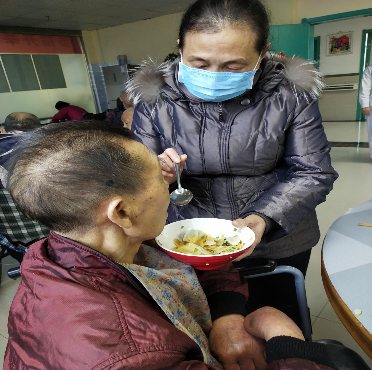 (图一)王卫梅主任医师给行动不便的尚润武主任喂饭