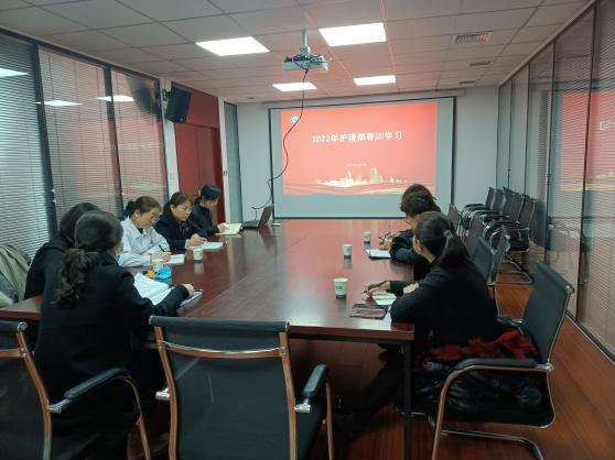 护理部主任高亚梅传达医院春训动员部署会议精神,领学《2022年市中心医院春训活动实施方案》《中国共产党第十九届中共委员会第六次全体会议公报》,要求大家高度重视,严格按照方案要求,积极开展自学,有效组织科室集中学习交流,对照实际深入查摆问题,扎实整改提升,通过春训活动,为2022年高起点开局奠定坚实基础。