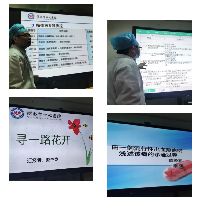 随后,科室分享特殊病历及业务培训。主治医师赵书香做《寻一路花开》主题演讲,分享了一例急性播散性脑脊髓膜炎的诊治过程。此病发病率低,文献报道少,在诊治过程中,她缜密思考,积极与上级医师沟通,查找资料,给出患者最终诊断,确诊后及时制定精准治疗方案,现患者已基本痊愈,取得了良好效果,也积累了宝贵的临床诊治经验。主治医师李滨通过一例危重症流行性出血热病例诊治过程,对2021版《肾综合征出血热防治专家共识》进行学习与思考,要求大家熟练掌握早期识别重症病例的预警指征,不断提高临床重症出血热的诊治水平,减少死亡率。李永涛带领大家学习《耐药结核病的治疗》,目前我院作为渭南市耐药肺结核定点医院,要对市域内耐药肺结核患者进行全程规范治疗,根据最新版诊治指南,耐药肺结核治疗方案有了更多选择空间,疗程较前缩短,有助于提高患者用药依从性。同时对药物可能出现的不良反应及处理方法进行学习,以便适时调整化疗方案,使更多耐药肺结核患者坚持完成疗程并得以治愈。