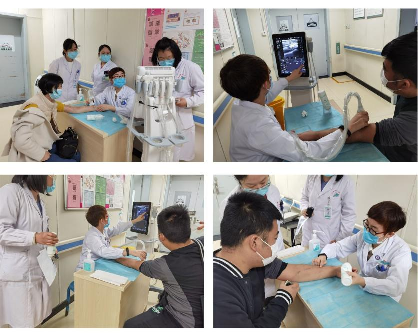 血管通路小组由主任薛晓霞,护士长张沛,医师王哲、谢李艳组成。普查采用高频线阵探头,依次使用超声探头检查患者动静脉内瘘吻合口、桡动脉、肱动脉、头静脉等部位,超声图像下测量患者各部位血管内径、血液收缩期峰值流速以及血管阻力指数等指标。