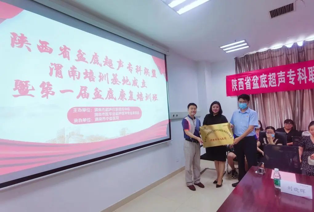 授牌仪式上,在与会专家的见证下,陕西省盆底超声专科联盟负责人管湘平主任与乐鱼手机站入口超声诊断科刘晓晖主任共同为“渭南市盆底超声培训基地”揭牌。