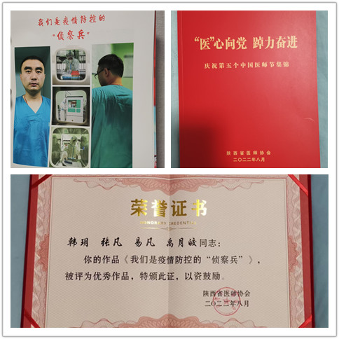 在疫情工作接近尾声之际,他们不断总结经验,修正不足,提高检测能力,同时不忘向社会宣传渭医人积极向上的精神风貌。他们的摄影作品《我们是疫情防控的“侦察兵”》获得2022年陕西省医师协会颁发的优秀作品奖,并收录在作品集中。