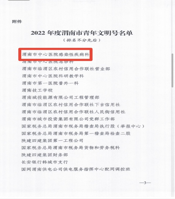 近日,乐鱼手机站入口感染性疾病科被共青团渭南市委授予市级“青年文明号”荣誉称号。