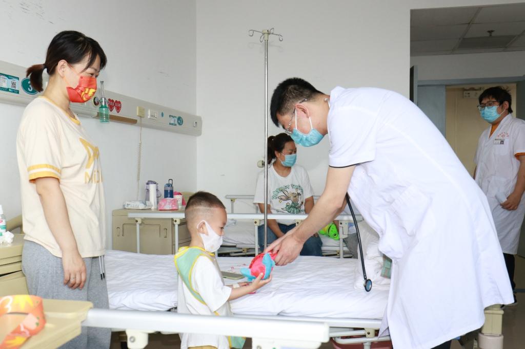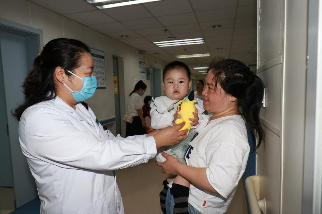 6月1日上午,儿科医护人员在田娟主任和王莉莉护士长的带领下给孩子们发放礼品,向她们送上节日的祝福,祝孩子们节日快乐,健康成长。