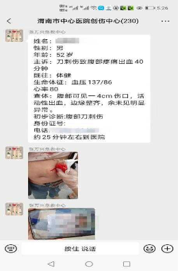 多科室协作,共筑生命长城。18时57分,急救中心接到电话,一位患者因刀刺伤腹部致大量出血急送医院。接诊医生迅速对患者病情做出评估,立即协调普外科、CT室、麻醉科、手术室、检验科等科室,做好救治患者准备。接到紧急通知后,相关科室人员第一时间到达急诊抢救室等候患者。19时55分,患者入院,上腹部正中可见一长约2.5cm横行伤口,深达腹腔。初步诊断:开放性腹部损伤。急诊科开通绿色通道,在创伤中心统一协调下,医护团队争分夺秒,心电监护、血压及血氧监测、吸氧、开放静脉通路、输液、清创包扎伤口、急诊CT检查……救治有条不紊进行。同时创伤中心组织紧急会诊和术前评估,针对患者情况及专科意见,20时24分收住普外科住院治疗。