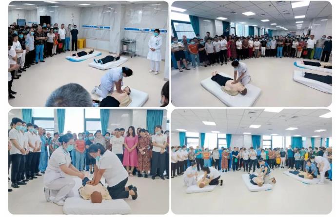 近日,乐鱼手机站入口举办胸痛知识及心肺复苏技术培训。心血管内科主任李军农、副主任侯江红,副护士长常莉和护士袁丽,医院保洁员和电梯管理员近200名人员参加。