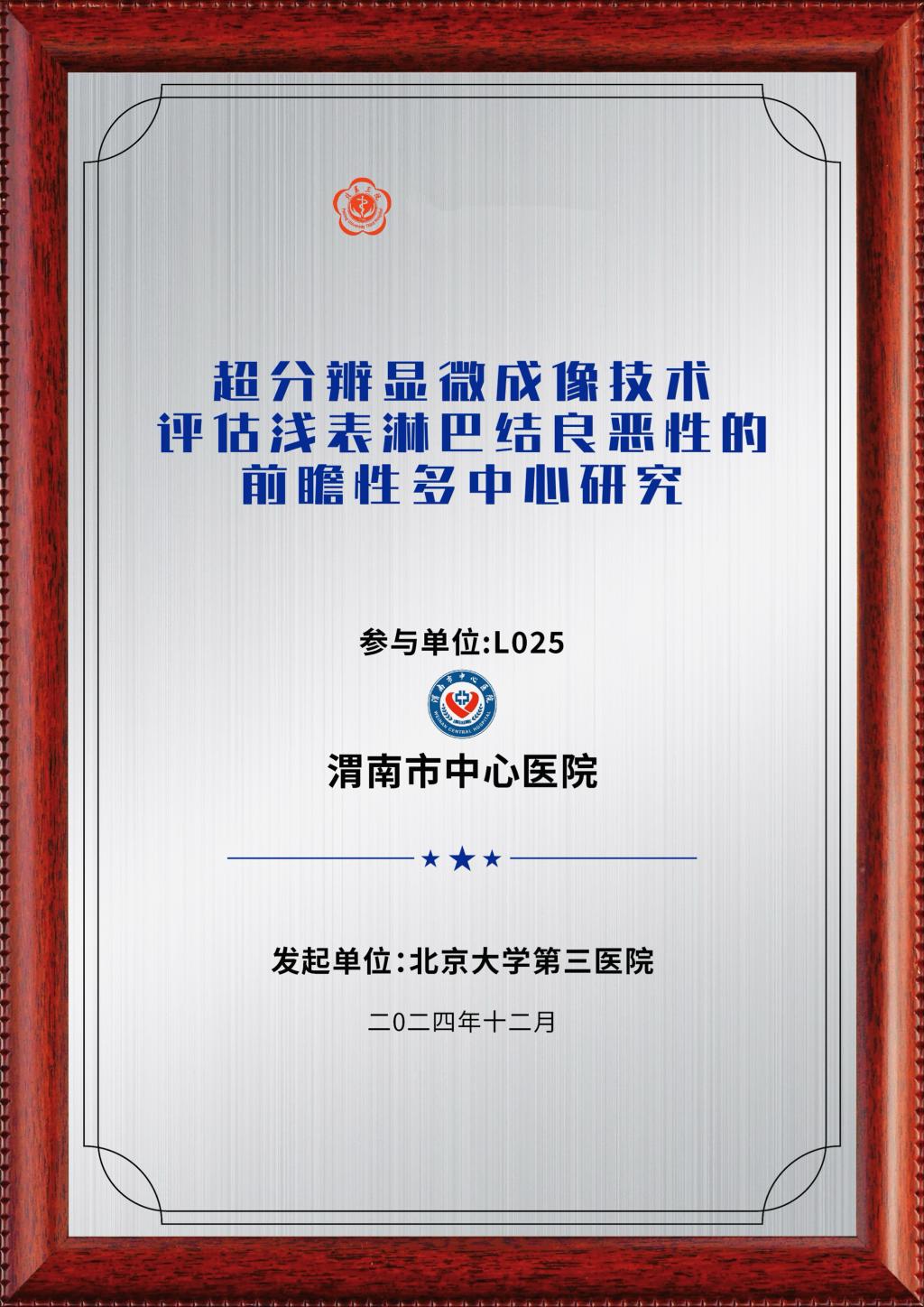 市中心医院是该项目陕西省市级医院唯一入选单位。此研究旨在通过先进的超分辨显微成像技术,提高浅表淋巴结良恶性判定的准确性和可靠性,为淋巴结疾病的诊断和治疗提供新的科学依据。