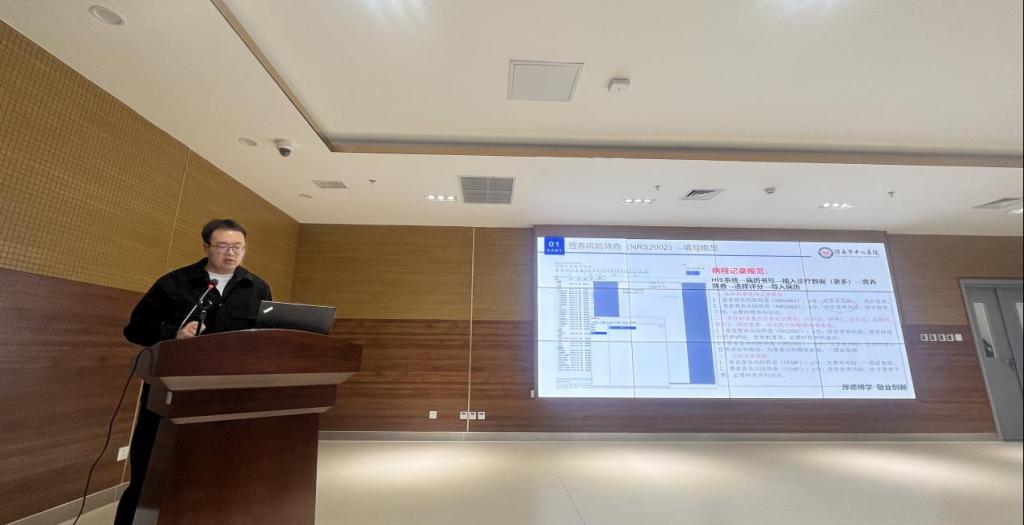 培训聚焦影像总论、胸腔穿刺的理论与操作、营养风险筛查及营养不良事件填报、国家传染病前置软件使用等核心内容。采用理论授课与实践操作相结合的方式,既有深入浅出的讲解,也有模拟操作和案例分析。CT&MR影像室刘康副主任医师通过系统讲解影像学基础知识,帮助医务人员更好地理解和运用影像技术,提高疾病诊断的准确性。胸外科李卫国副主任医师详细讲解胸腔穿刺的适应症、操作步骤及注意事项,并通过模拟操作演练,提升医务人员的实际操作能力。营养科张博营养师重点培训营养风险筛查的方法和流程,以及如何规范填报营养不良事件,确保患者营养管理的科学性和规范性。信息科张晓东根据传染病防控需求,培训医务人员熟练掌握国家传染病前置软件的操作流程,提高传染病报告的及时性和准确性。