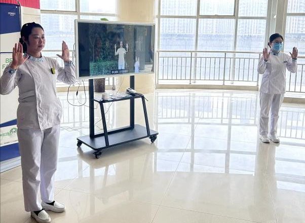 活动延伸环节,在神经内科病区大厅举行健康大讲堂。护理团队通过标准化血压测量示教,纠正患者常见操作误区;现场教学“乐眠操”,通过呼吸-动作协同训练,帮助参与者掌握自主神经调节技巧。