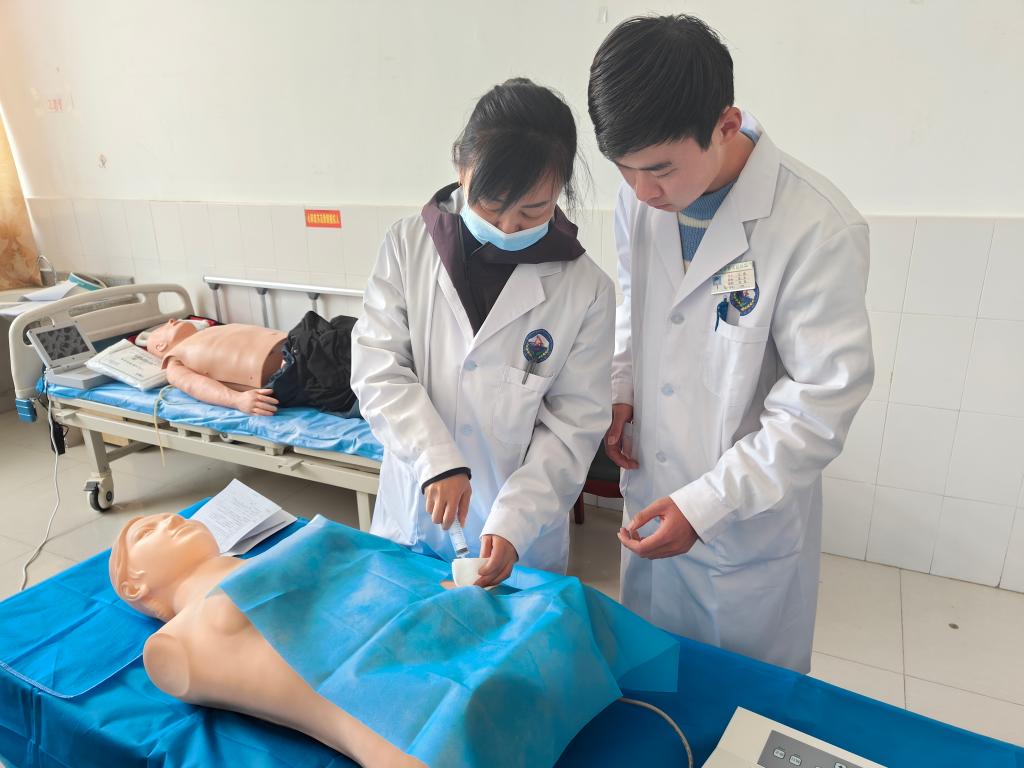 来自乐鱼手机站入口呼吸内科副主任医师张潇与麻醉手术科主治医师穆明涛作为援藏医生,为当地医护人员系统讲授了胸穿、腹穿、腰穿、骨穿、气管插管、简易呼吸器使用、吸痰等七大临床操作技术,20余名基层医护参与培训。