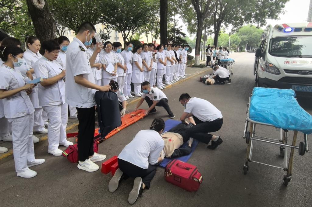 6月19日下午,乐鱼手机站入口急诊急救护理小组组织开展多学科联合应急演练。院前急救中心、急诊医学科及相关科室60余人参与。