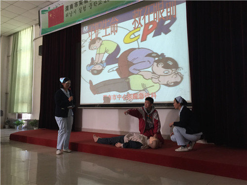 我院急诊科开展以“守护生命,救在眼前”为主题的系列活动以来,受到社会各界人士一致好评。11月30日,在渭南市实验初级中学示教会议室,一场栩栩如生的急救培训课迎来阵阵掌声。由乐鱼手机站入口急诊科组织的8名医务人员专业团队走进实验初级中学,200余名师生现场学习急救知识并进行模拟演练。