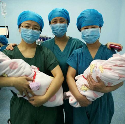 2017年3月24日9时,患者足月,一胎儿脐绕颈,在我院妇科尚铁燕主任、雷红副主任、产科王丽菊副主任、麻醉师任钰副主任医师的通力配合下,为患者成功实施了剖宫产手术,先后娩出龙凤胎宝宝,男婴(2700g),女婴(2650g),母婴平安。