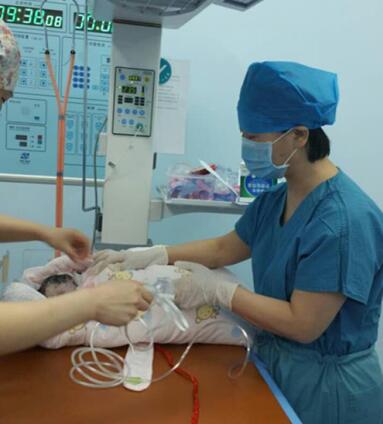 妇科雷红副主任为婴儿清洗呼吸道及脐带