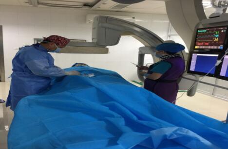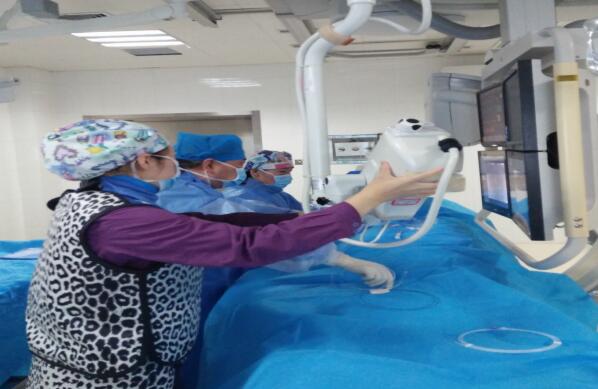 护士李璐配合的是颅内动脉瘤介入栓塞手术。问起她的感受,她说,每天我们都要穿着厚重的铅衣为患者准备介入手术材料及注射药物,不但要严密观察患者病情,还要根据影像来判断术者所需的介入手术材料,术中注射不能影响手术进程,并且要耐心跟病人做好心理护理及防辐射的解释工作。看到病人满意的笑脸,听到他们说一句谢谢时,心里也会欣慰,感觉一切辛苦那都不是事儿。