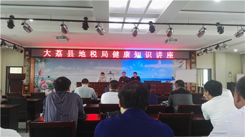 为进一步提高全民对合理饮食重要性的认识,倡导科学合理健康的工作生活方式,加强自我保健意识,更好地为市民体检提供优质服务, 2017年9月8日,我院体检科联合肿瘤外科姜永红副主任医师来到大荔县地税局,为他们进行2017年度团体体检反馈及健康知识讲座。
