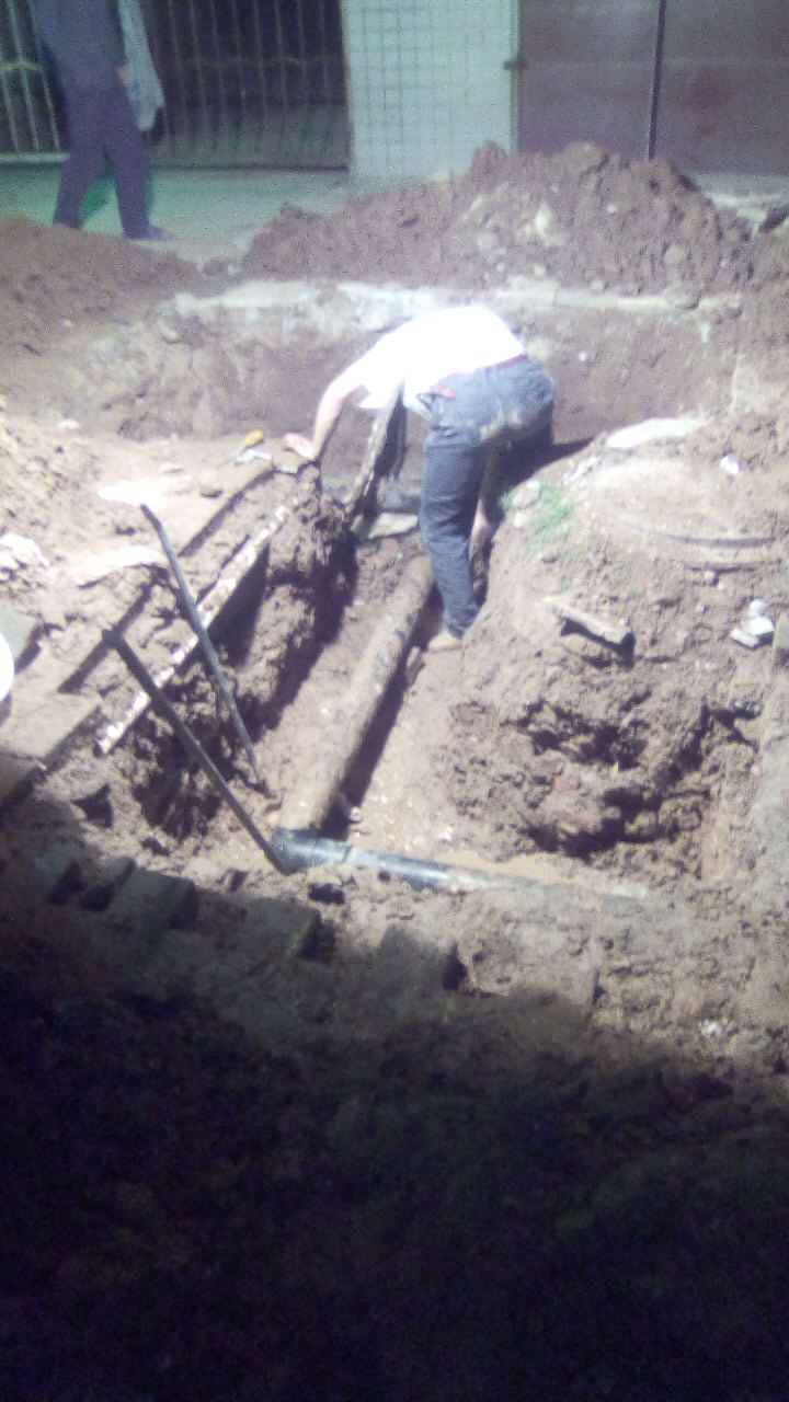 9月15日晚八点,我院水工班老院区班组值班人员王伟民在进行例行夜间巡查时,发现第五病区进水主管道旁边的水井不停地大量向外冒水。王卫民立即打电话上报,水工班班长阮智荣接到电话后马上赶往现场,经过检查和排除,发现是五病区南院进水主管道破裂,即刻组织水工班人员进行连夜抢修。水工班金小源、王伟民、阮朝娃、王渭安等人挖开地面进行抢修,地质坚硬,加上又是夜间,给抢修带来一定难度。天公又不凑巧,夜间11点下起了大雨,使抢修工作难度又一次加大。抢修人员在确保抢修质量的同时,加快抢修速度,经过长达六小时的抢修,于16日凌晨两点,抢修完成,保证了第二天老院区五病区和南院正常用水,此时大家都成了泥人......