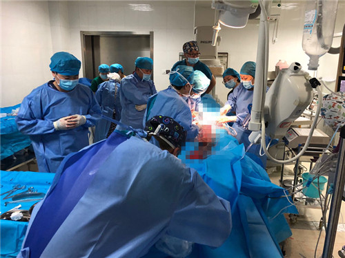 产科魏满莉主任立即通知介入科、麻醉科、新生儿科进行多学科疑难危重病例讨论并上报医务科。介入科李建国主任结合患者病史及目前情况建议行腹主动脉低位球囊扩张临时阻断盆腔血流后再行剖宫产,有效减少术中出血,增加保留子宫几率。但此类手术风险极大,仍不排除剖宫产术中术后大出血、行子宫切除、危及生命等可能,因此他耐心细致地向患者及其家属讲明此种手术的利弊,获得了家属的理解和支持。
