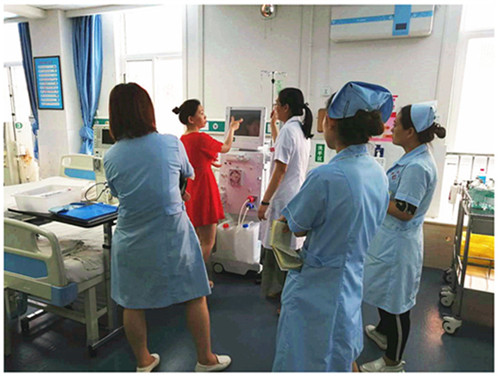 在本次走访中,乐鱼手机站入口血透室副护士长张沛为当地血透室医务人员进行现场指导。