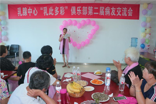 乳腺癌已成为当今女性健康的头号“杀手”,发病率高居女性恶性肿瘤榜首,死亡率却逐年下降,得益于乳腺癌早期筛查、精准规范的治疗方式、术后康复等全程管理。治疗和康复过程中,病友对于治疗信息、心理支持和康复护理等多方面的需求也日益增多。“乳此多彩”俱乐部旨在为乳腺病友提供一个医患交流、病友交流以及传递抗癌正能量的平台。定期举办病友会,促进乳腺癌病友之间的回归家庭、回归社会的经验交流和情感上的相互支持,提高乳腺癌患者和家属的生活质量。