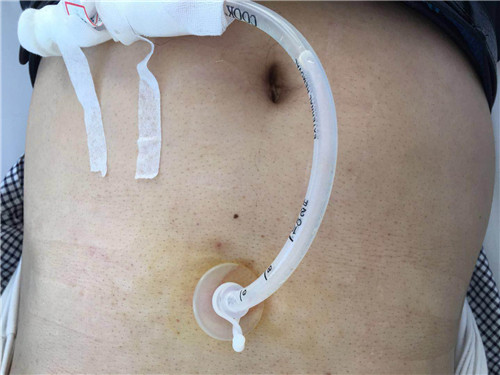 患者男性,48岁,发现口腔腺泡癌2年,2月前复发,因需要做口腔手术而不能经口进食,需要做胃造瘘术。