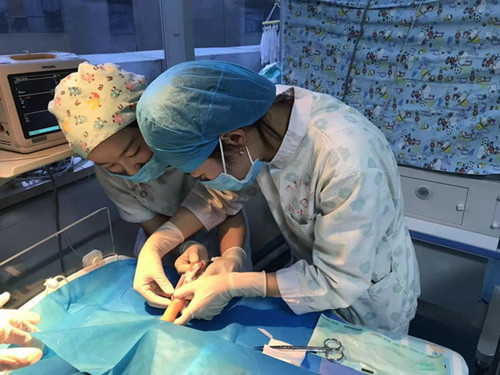 10月8日,乐鱼手机站入口新生儿科收治了1名极低出生体重儿,孕周不足34周,体重不足1400g,且为双胎之一。该患儿生后病情危重,尤其是消化道发育极不成熟,无法短时间内达到全肠内喂养,需要长时间应用静脉营养液。但早产儿静脉血管壁薄,高浓度静脉营养液对血管刺激大,易引起液体外渗及静脉炎,严重者引起局部皮肤坏死等严重不良反应。同时因穿刺困难或反复穿刺造成血管损坏,增加患儿痛苦,增加感染机会。因此极低体重早产儿静脉穿刺及护理一直是新生儿护理领域的一大挑战。一条长期、安全、有效的静脉通道对极低体重早产儿尤为重要。