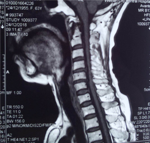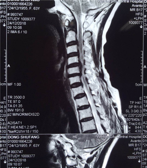 闻着这段老腔,笔者走进骨一科来探个究竟,原来这是一名入住骨一科患者家属为表示内心的感激之情写下的一段老腔段子。据了解,该患者董某,女,58岁,是近日因颈部疼痛出现四肢麻木,无力,行走困难,需要家人搀扶行走,来市中心医院经查体考虑为颈椎间盘突出颈髓损伤入住医院骨一科。