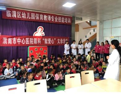 在第24个全国“爱眼日”来临之际,为帮助青少年形成合理用眼、科学矫治的意识,倡导孩子养成良好的用眼习惯,我院眼科从2019年5月下旬至6月上旬先后在临渭区幼儿园、渭河小学等学校及乐鱼手机站入口门诊大厅开展了以“共同呵护好孩子的眼健康,让他们拥有一个光明的未来”为主题的第24个全国爱眼日健康知识宣教及义诊活动。