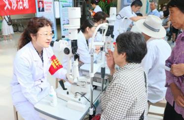 6月6日一大早,李娟护士长带领科室人员来到门诊大厅,提前准备好桌椅、宣教资料及眼压仪、裂隙灯、眼底镜、视力表等免费检查仪器。8:00,门诊就挤满了前来义诊的群众,护理人员首先为患者进行了视力、眼压检查。8:30科主任田瑾带领眼科团队查完房后就匆匆来到现场,为患者进行健康用眼指导、科学咨询以及裂隙灯、眼底镜检查。
