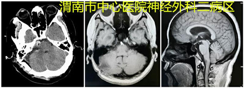 由于头颅CT及MRI可见小脑脑桥角区域内病灶巨大且位置深,增强扫描可见血供丰富,小脑前下动脉供血,与小脑幕粘连,可能包绕面听神经,毗邻后组颅神经、岩上窦、岩静脉及脑干。所以此病案手术风险高,术后可能会出现面瘫、闭眼不能、听力下降等风险,甚至有饮水呛咳、肢体瘫痪、昏迷,也有死亡可能。经术前积极全面评估、认真准备、科室广泛的讨论,研究出“分解困难,逐步完成”的基本原则准备手术。