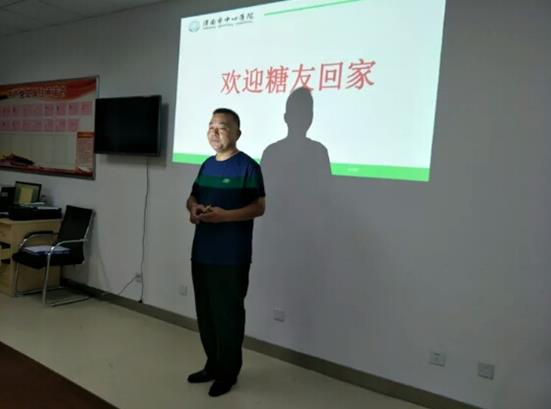 糖尿病专科护士、副主任护师王菊贤通过多媒体形式向患者普及了糖尿病发生的病因,病理及相关防治知识,教育内容形象生动,通俗易懂。
