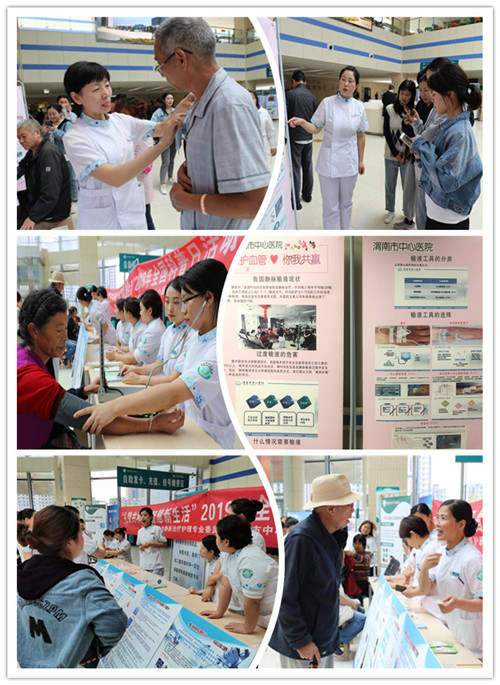 活动正式开始后,在我院静脉治疗小组王爱平组长的组织安排下,护理工作者为患者讲解我国输液的现状、对输液的正确认识、输液工具的发展与分类、输液工具的正确选择以及静脉导管留置期间并发症的预防等相关知识,发放静疗知识宣传手册、现场展示各类输液工具、进行静脉治疗操作的模拟演练,并为患者提供免费血压监测、血糖监测等各项服务。