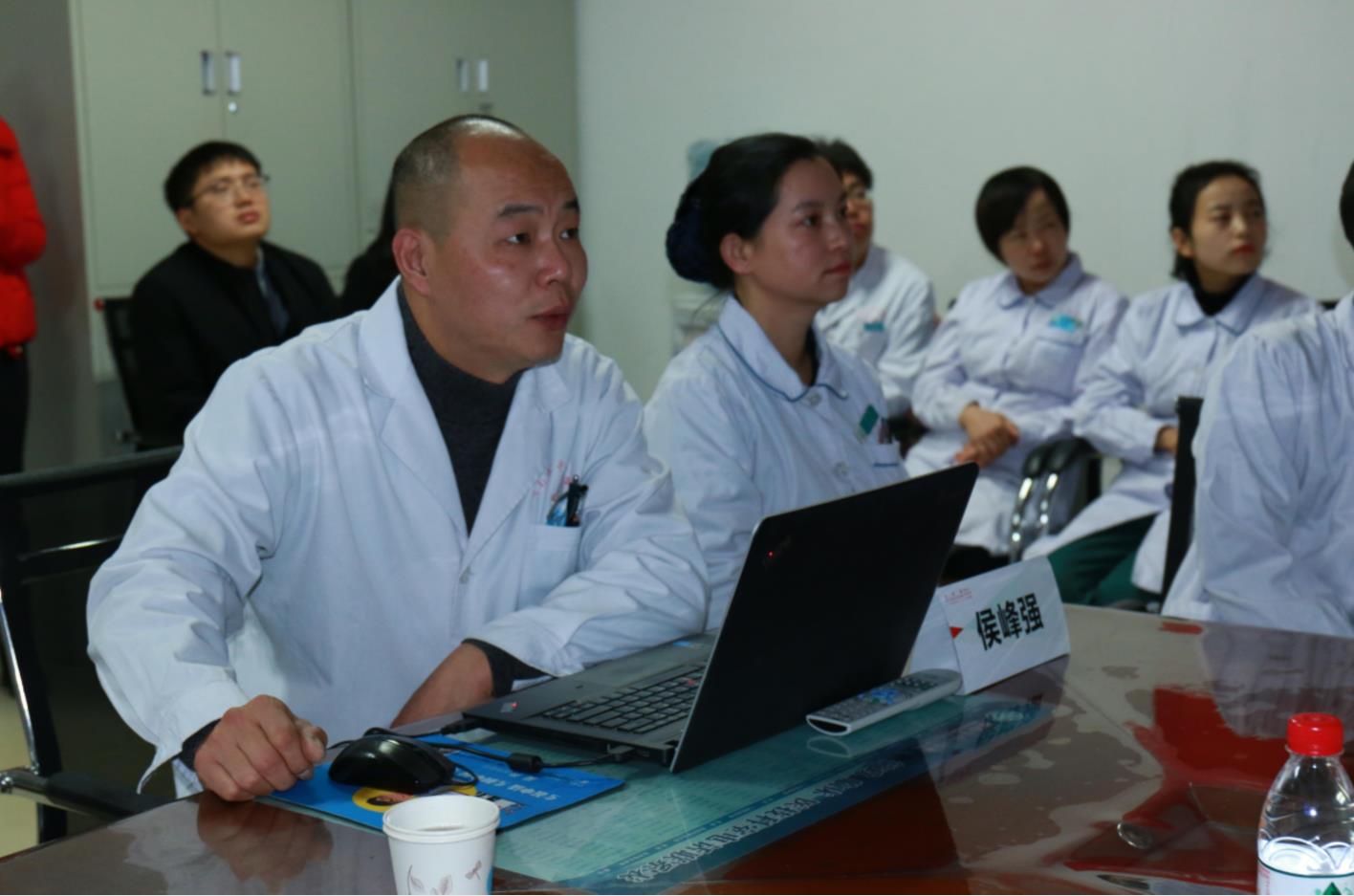 学术交流最后,我院普外科侯峰强副主任医师汇报了我院普外团队一例腹腔镜直肠癌根治术视频,并与单毓强教授团队进行了面对面手术技巧交流。