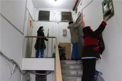 由于是老小区,楼道里喷、贴小广告的现象严重。活动中,大家不畏严寒,自带热水、喷壶、小铲子等工具,以饱满的热情投身到环境“保卫战”中。面对形形色色的小广告,想尽办法清理。大家撕的撕、铲的铲,遇到粘贴牢固的就用准备好的喷壶喷上清洁剂再用小铲子逐一耐心地铲掉。每一个人都铆着一股劲,不给小广告留下一丝“生存”空间,经过大家不懈的努力,小区环境焕然一新。