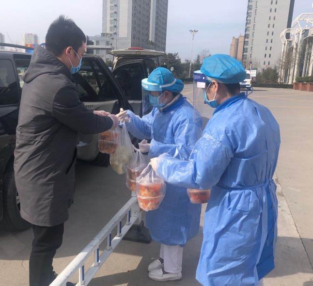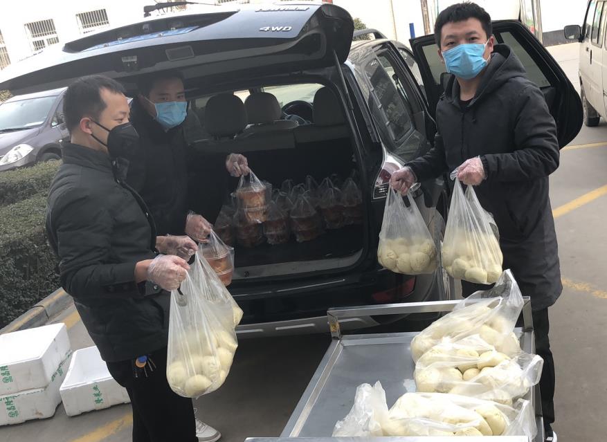 从1月28日开始,为了保障一线医护人员和救治患者能够一日三餐准时吃上,工会施泰来主席多方协调,部署安排,他们三人有时最早6点半赶到医院食堂将一百多份盒饭开始装车,每一趟就要耗时2个小时,一天送餐下来就要往返70多公里,最忙的时候他们只能各自解决吃饭问题。