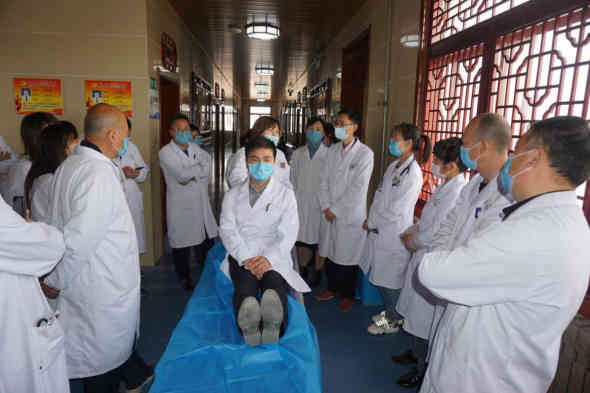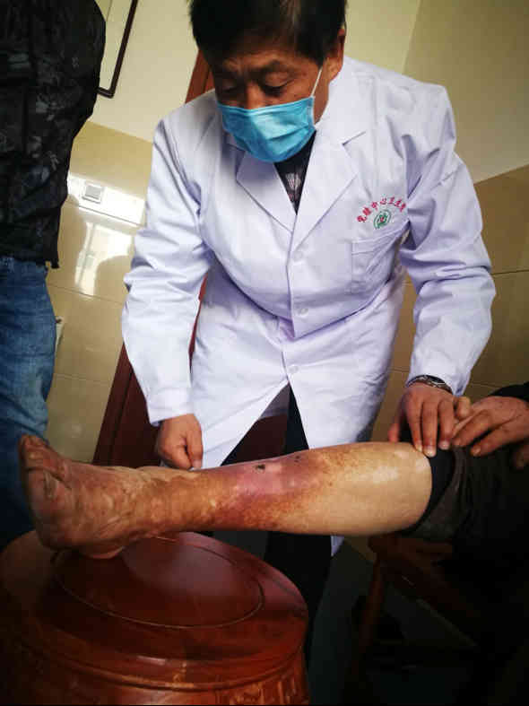 查房结束后,所有专家分别在外科门诊和内科门诊坐诊,和基层卫生院医生共同接诊和处理门诊患者,探讨复诊患者存在的相关问题。周东升主任在党睦镇卫生院为1名右小腿径前外侧反复感染的患者进行了会诊,详细询问了病史和治疗经过,向患者家属分析了感染不易愈合的原因,指出了下一步检查项目和治疗原则,缓解了患者和家属的急躁情绪。