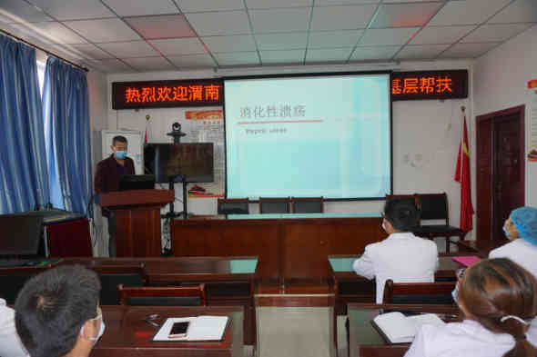 4月14日下午,消化内科副主任朱浪潮、神经内科副主任医师卫晓红、17级住培医师邹治坤、梁虹分别做了《眩晕的诊疗方法和思路》《消化性溃疡》《慢性胃炎》《胃食管反流病》《甲型H1N1流感》《流行性腮腺炎》专题讲座。张桥镇卫生院医务人员及乡医近30人参加了专题培训。通过本次培训,使基层医生掌握了眩晕、消化性溃疡、慢性胃炎、胃食管反流病、甲流、流行性腮腺炎的临床诊断标准和诊疗思路。同时,神经内科卫晓红副主任医师和全科住培医师邹治坤配合,为基层医师进行了眩晕患者临床常用检查示范教学。在理论培训和技能演练过程中,基层医护人员多次响起掌声。