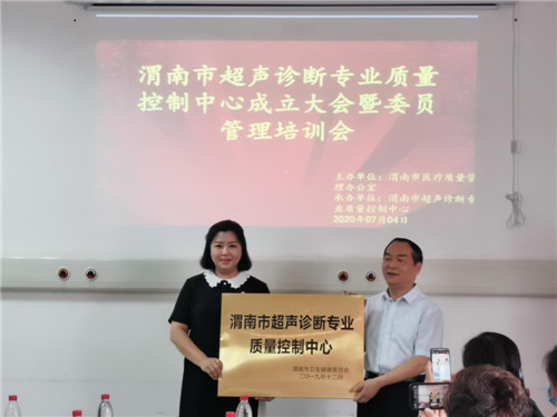 7月4日,渭南市超声诊断专业质量控制中心成立授牌大会暨委员管理培训交流会在市中心医院召开。来自全市35家医院的60余名超声科负责人及从业人员参加会议。
