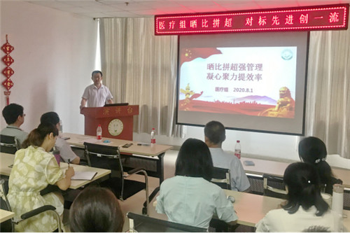 做表率,带头干。焦建雄副院长对上半年医疗组的工作进行了阐述,对各部门在战疫中的辛勤付出表示衷心感谢。肯定了医务科在战疫取得成果中发挥的重要作用,对疾控科在疫情期间及时准确的数据上报、质控科和医疗安全科放弃春节休假积极参与疫情救治并创新工作给予表扬。指出对标管理、绩效考核及精细化管理等重点工作取得的成效、存在的问题及今后努力方向。他强调,医疗组主要承担着疾病诊治、医疗保健、学科建设及质量安全管理等重要的职能,在医院管理中具有举足轻重的作用。院党委开展此项活动正是大家所愿,通过“晒比拼超”,就是要改变大家“庸、懒、散、慢、虚”以及不担当不作为乱作为的工作作风、培养责任担当意识和积极进取精神。希望大家一定要明确岗位职责,熟知管理标准,找准目标定位,把自己培养成医疗管理专家。