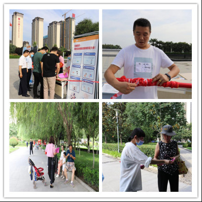 志愿者们来到金堆城社区,不顾天气炎热,在广场上摆好桌椅和展板为小区的居民进行健康宣教。活动通过展板、宣传资料、现场讲解等方式向居民普及预防新冠肺炎的相关知识、文明健康生活知识、疫情防控工作知识,使居民深刻了解创建相关知识和健康知识。活动期间共计发放宣传资料一百余份,志愿者们热情的态度和生动的讲解受到了社区居民的好评。
