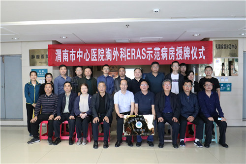 9月21日,乐鱼手机站入口加速康复外科(ERAS)病房在肿瘤外科二病区成立,同时举办学术交流会议。西安交通大学第一附属院付军科教授、李硕医师,宝鸡市中心医院胸外科王军岐主任,渭南市妇幼保健医院外科吴茂喜主任,渭南市第一医院普外科孙峰侠主任、吕永祥主任,渭南市第二医院肿瘤科李力鹏主任,蒲城县中医医院唐振江主任,大荔县人民医院张洛丁副院长,乐鱼手机站入口医务科刘韬科长、营养科权亚玲科长、各外科系统主任及护士长参会。肿瘤外科二病区李新选主任主持会议。