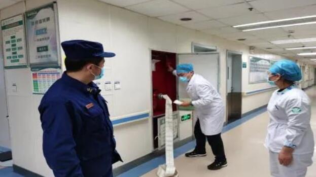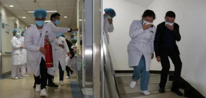 与以往不同的是,在听到警报声后,联动楼层5、6、7三层共6个病区同时按照应急预案开展初期火灾的扑救、火灾报警以及人员疏散,所有工作有条不紊进行。微型消防站队员在发现消防控制柜反映6楼西区发生火灾报警后,迅速穿戴消防设备,乘坐消防电梯奔赴着火楼层,用时2分20余秒。
