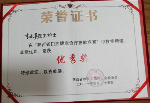 4月25日,由陕西省教科文卫体工会、省口腔医学会、西安护理学会主办,西安交通大学口腔医院、西安医学院、西安护理学会口腔护理专委会承办的陕西省口腔健康诊疗技能竞赛在西安举行。乐鱼手机站入口参赛选手口腔科主治医师贺欣、主管护师李晓英在全省二十余家医院代表队中获优秀奖。