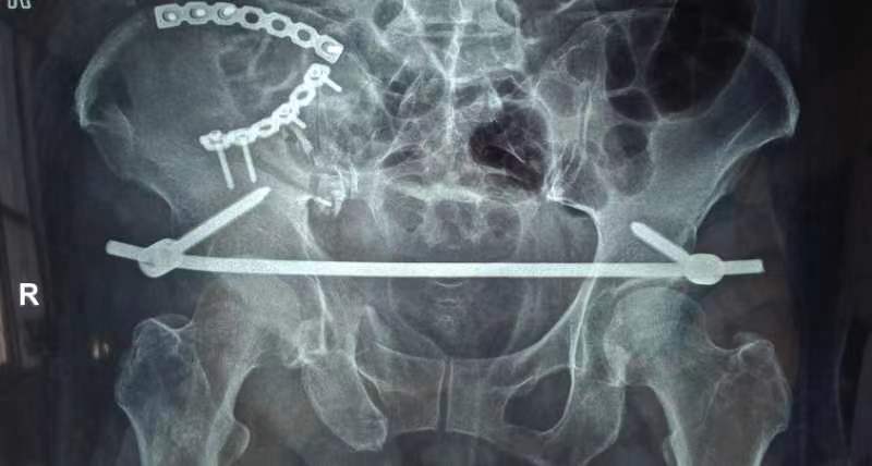 近日,乐鱼手机站入口骨一科收治一位69岁骨折患者。患者遭遇车祸骨盆骨折、前后环损伤,造成骨盆旋转、垂直不稳定,导致翻身疼痛并且护理困难。